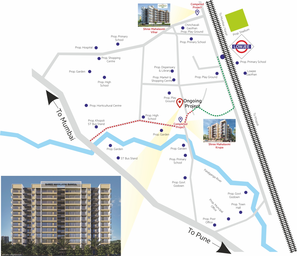 Project Shree Mahalaxmi Sankul is strategically located 5 minutes away from the Lowjee Station with easy access to the local market place, railway station, hospitals, and educational institutes to give you and your family an enriching growing environment.